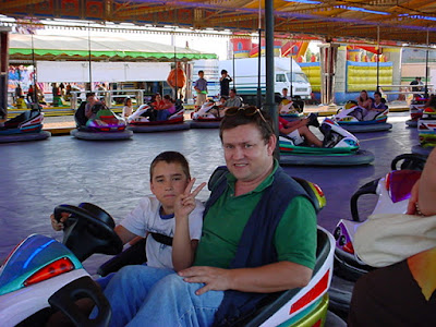 Badajoz, junio 2001, en la feria, con mi hijo Javi