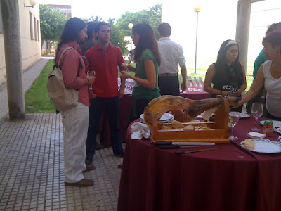 Por lo demás, la gente encantada, como siempre, de la hospitalidad extremeña. Yo lo tengo dicho en el área... Aún sin Facultad de Sociología, apuesto que en unos años nos acaban pidiendo que montemos el congreso de la ISA en Badahó. Y es que aquí, con dos trapillos, un buen vino y unas lonchitas de jamón (del de verdad, claro), todo el mundo se va contento... (algo haremos los anfitriones también, claro; Mar, Manuela, Miguel, Ramón, Mané y Santiago se enrollaron a base de bien para que todo saliese como debía).